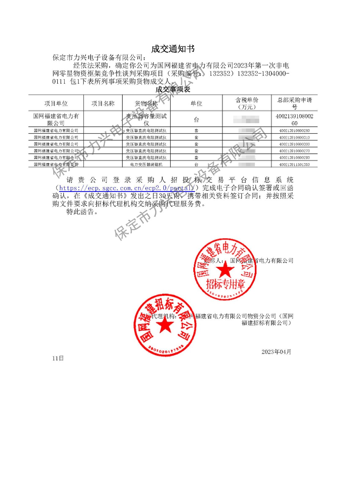 5. 2023.06.25 國網天津市電力公司2023年第三次物資競爭性談判項目(中標2個包)