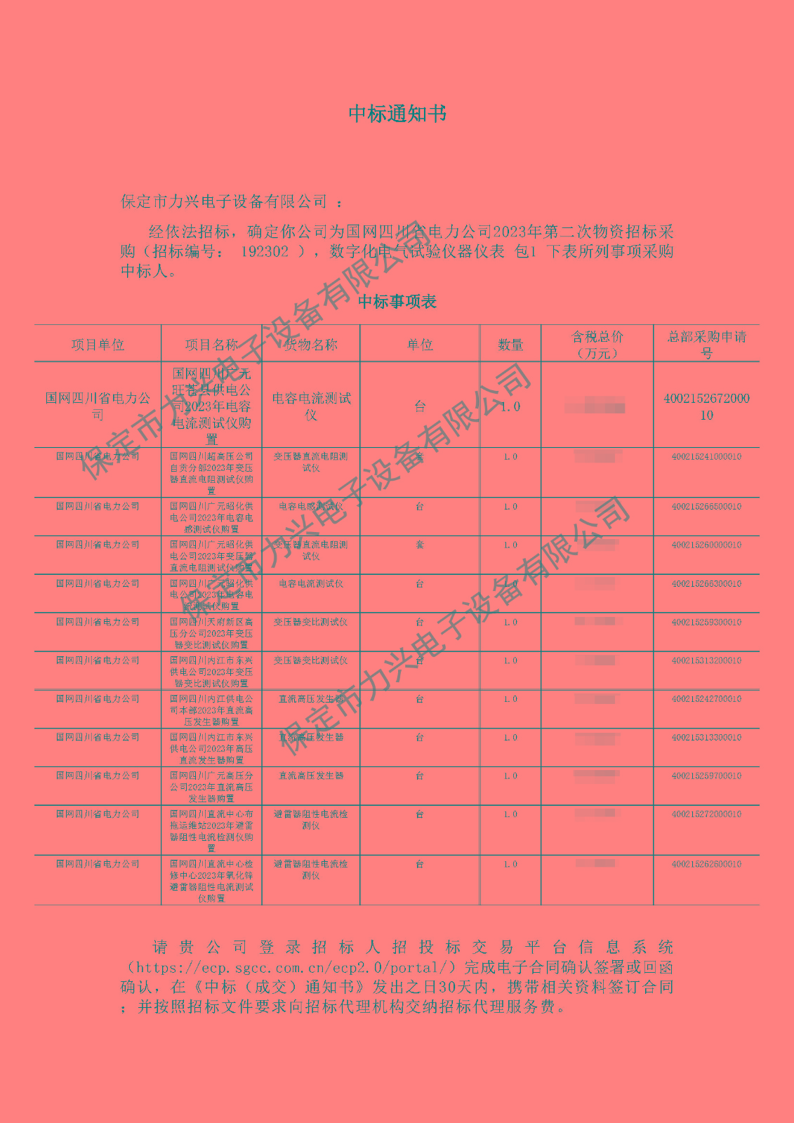 4. 2023.05.22 國網四川省電力公司2023年第二次物資招標采購-中標通知書